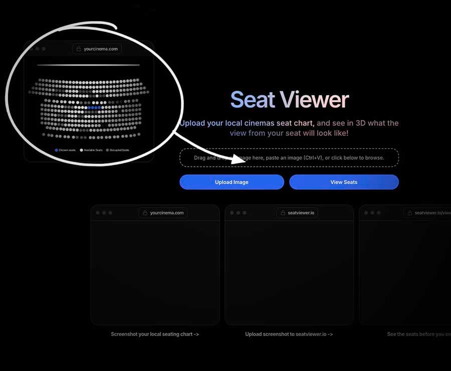 2. Upload screenshot to seatviewer.io ->